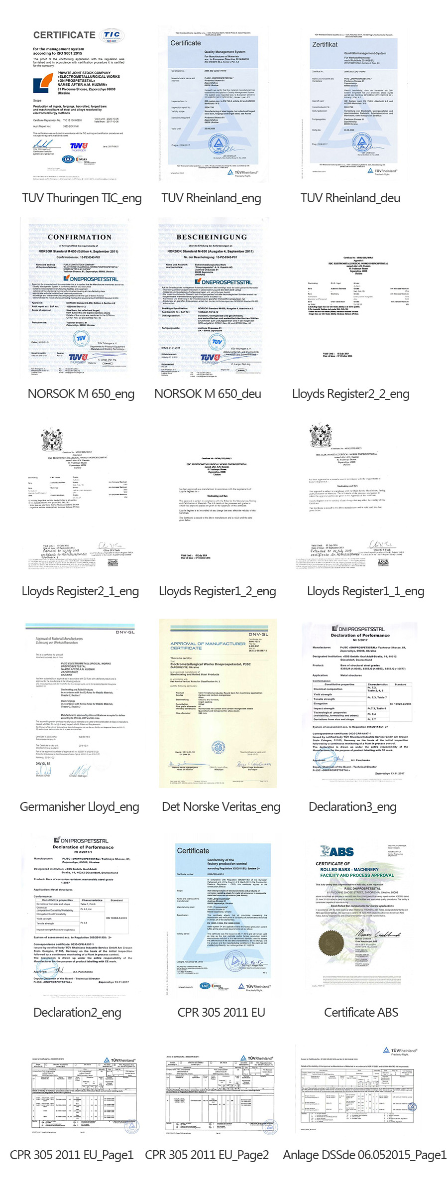 我們的產(chǎn)品質(zhì)量符合國(guó)家和國(guó)際標(biāo)準(zhǔn)的要求,其中包括GOST(CIS),ASTM,AISI(美國(guó)),EN(EU),DIN(德國(guó)),BS(英國(guó)),AFNOR(法國(guó)),JIS (日本)等。