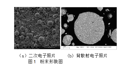 圖 1(a)為二次電子照片,圖 1(b)為背散射電子照片,從背散射電子照片中,可以看到粉末顆粒中的碳化物非常細(xì)小。