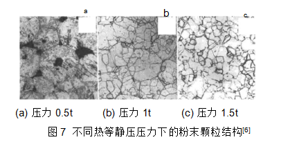 - 7 為吳引江等人研究的在不同壓力下,在 900 ℃ 保溫3 h 熱等靜壓機(jī)中,Ti- 5Al- 2.5Sn 粉末顆粒界面的形態(tài),圖 7(a)中顆粒形狀基本沒(méi)有太大變化,仍為初始的圓形,并且顆粒之間有很大的間隙,當(dāng)壓力增大時(shí),顆粒變形較大,顆粒間的空隙消失,這也證實(shí)了我們的模型圖。